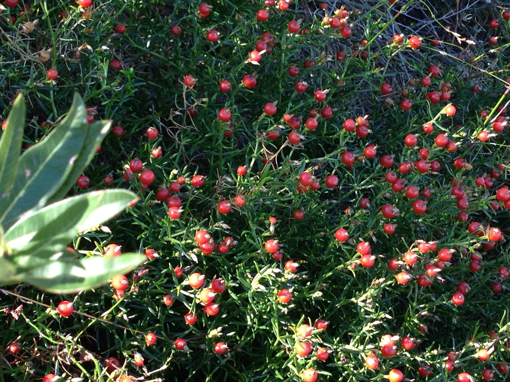 As we run, or should I say plod, up the path that goes through the olive groves to the top of the farm, we pass this fearsome, stunning shrub. I showed this photo to Peter, my husband and he wryly acknowledged that he knows it all too well. Like many South African farmers he likes to wear shorts and sometimes comes home with his legs ripped to shreds. This chap is one of the culprits. But look at what a stunning chap he is. I actually managed to get a shot of the small thorn-head in focus, grey with tiny spikes of gold set in little balls. A bigger version could be a medieval weapon of war. I don’t know what this is, there’s lots of it about and it must be pretty common and I will identify it sooner or later and post the name.
